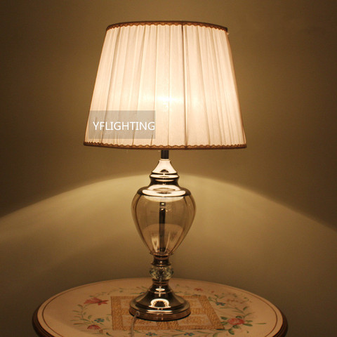 โคมไฟแก้วตั้งโต๊ะสไตล์แจกันฐานคริสตัลสีขาวผ้าตกแต่งภายในสมัยใหม่แบบยุโรปโคมไฟโต๊ะรับประทานอาหาร
